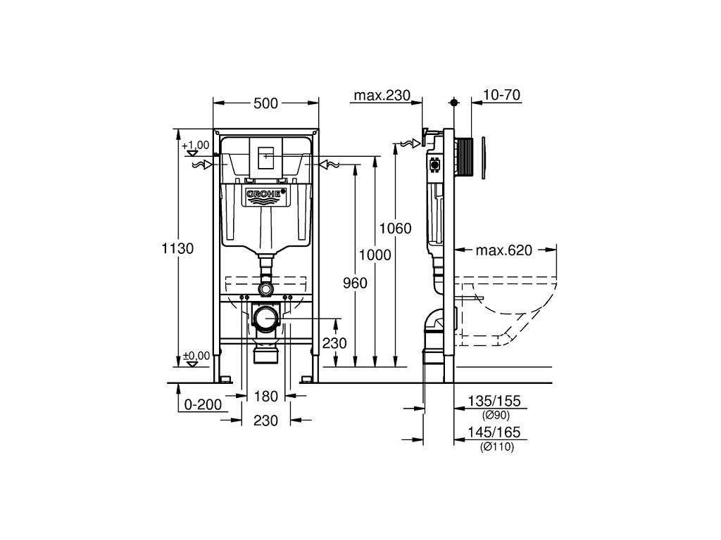 <p>splachovacia nádrž GD 2<br />stavebná výška 1,13 m <br />pre predstenovú montáž alebo montáž do ľahkej priečky<br />oceľový rám, práškové lakovanie, samonosný <br />pre obloženie sadrokartónom, kompletne predmontované<br />pevné objektové prípojky<br />rýchle nastavenie, uzamykateľné, upevňovací materiál<br />certifikované TÜV<br />2 úchyty pre WC, upevnenie keramiky<br />WC keramika s plochou menšou ako 205 mm vyžaduje dodatočné príslušenstvo 38 779 000<br />rozteč šróbov 180/230 mm, odpadové koleno Ø 90 mm<br />hĺbkovo nastaviteľné, redukcia Ø 90/110 mm<br />prívodná a odpadová súprava<br />splachovacia nádrž 6 - 9 l <br />nastavené z výroby na 6 l - 3 l<br />pneumatický odtokový ventil ponúka 3 režimy chodu:<br />2-činné splachovanie alebo štart/stop<br />alebo neprerušiteľné (len štart)<br />prívod vody zľava / sprava alebo zozadu<br />skupina armatúr I - nízka hlučnosť<br />izolované od kondenzujícej vody<br />prípojka vody DN 15 s integrovaným rohovým ventilom<br />a šróbovým spojom bez použitia náradia<br />pre inštaláciu nie je potrebné náradie<br />kontrolné hriadele vrátane ochrany behem fázy výstavby<br />pre vertikálne alebo horizontálne použitie<br />doplnky pre stenové inštalácie<br /><strong>s krycou doskou Skate Cosmopolitan</strong><br />horizontálna a vertikálna montáž<br />vertikálna montáž<br />156 x 197 mm, chróm, vyrobená z ABS<br /><strong>GROHE StarLight</strong> chrómový povrch</p>Buďte prvý, kto napíše príspevok k tejto položke.