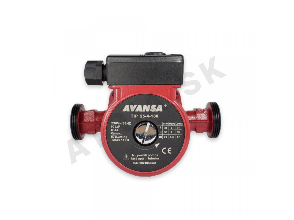 Obehové čerpadlo Avansa 25/40 180mm je určené pre všetky rozvody vody v dome. Teleso čerpadla je vyrobené z liatiny, liateho hliníka. Vysoko kvalitný bipolárny motor, asynchrónny, nevyžaduje ochranu proti preťaženiu, má tri rýchlosti, ktorý je ovládaný špeciálnym vypínačom namontovaným na svorkovnici, ktorá umožňuje nastaviť čerpadlo na vlastnostiach zariadenia.
