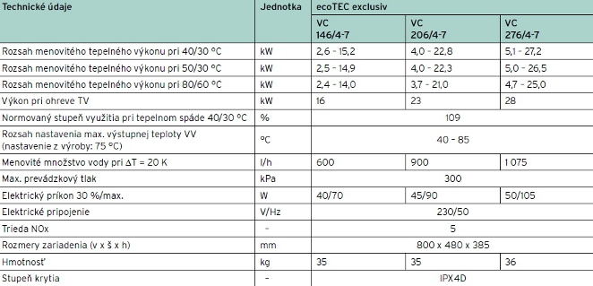 Vaillant ecoTEC exclusiv spĺňa tie najvyššie nároky na efektívnosť, úsporu a pohodlie. Pomocou ecoTEC exclusiv znižujete náklady na vykurovanie automaticky – vďaka širokej modulácii výkonu od 17 % do 100 % prispôsobuje kotol svoj výkon skutočnej potrebe tepla. To znižuje spotrebu plynu, zabráni stratám pri nečinnosti a pri štarte a zabezpečuje tým dlhšiu životnosť. Prostredníctvom funkcie Aqua Power Plus zasa dokáže takmer okamžite dosiahnuť až o 14 % väčší výkon pre ohrev teplej vody. Aj týmto spôsobom môžete šetriť náklady. Kotol ecoTEC exclusiv pracuje na báze jedinečného multi-senzorického systému spoločnosti Vaillant – CO snímač, snímač tlaku vzduchu, objemového prietoku a tlaku vody nepretržite merajú kvalitu spaľovania a prietok vykurovacej vody. Neustále tak pracuje v optimálnom, čiže úspornom režime. Kotol ecoTEC exclusiv však šetrí nielen plyn, ale aj elektrickú energiu, pretože nové vysoko účinné čerpadlo spotrebuje až o 50 % menej energie ako bežné modulačné čerpadlá. Inštalácia a obsluha kotla ecoTEC exclusiv je jednoduchá aj vďaka podsvietenému textovému displeju s diagnostickým a informačným systémom. K systému je taktiež možné jednoducho pripojiť ďalšie komponenty, napríklad systém solárneho ohrevu teplej vody a podpory vykurovania.