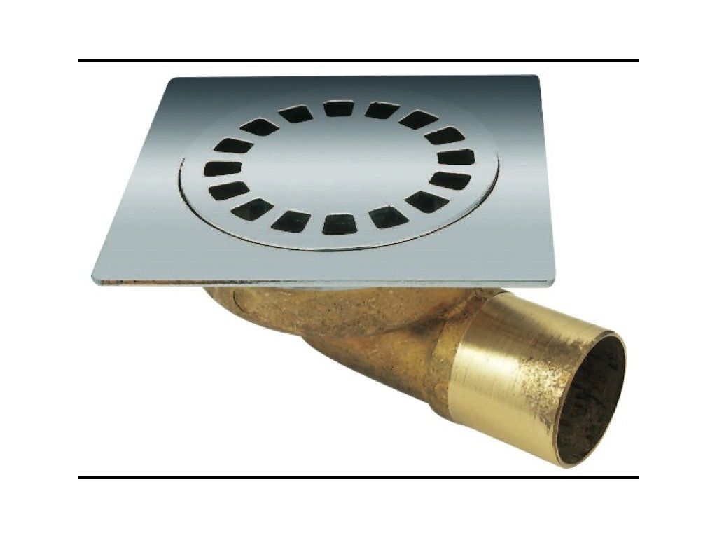 Vpusť podlahová s chrómovou mriežkou 12x12cm, DN 40, mosadz